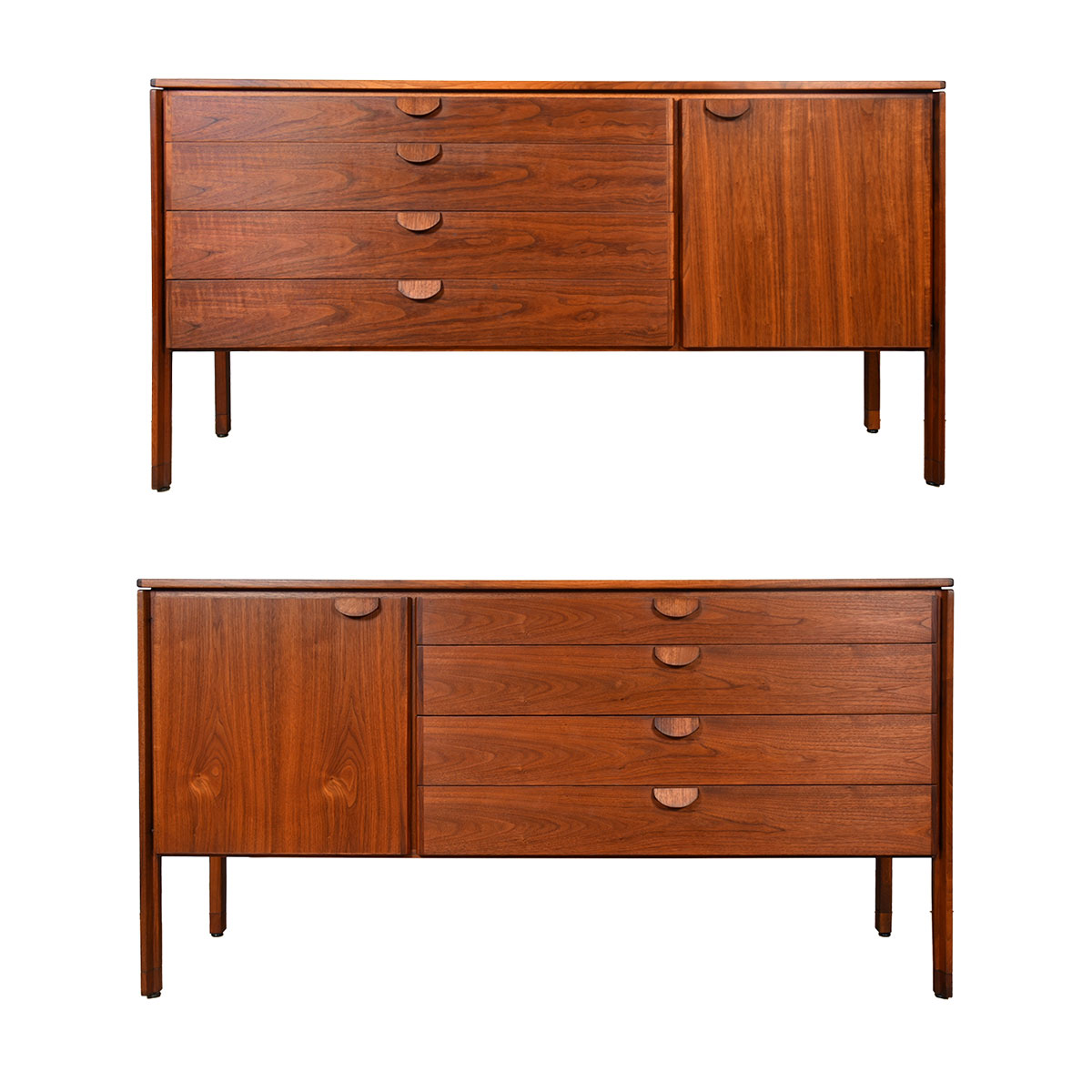Mirror-Image Pair of Jens Risom Walnut Dressers | Credenzas
