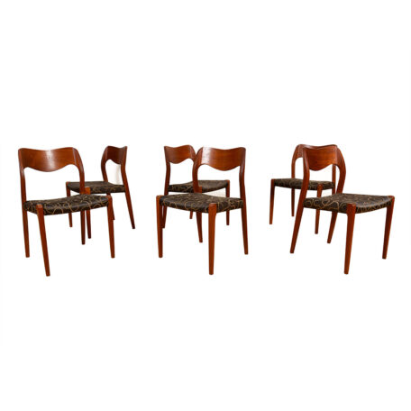 Model 71 Set of 6 Danish Teak Niels Moller Dining Chairs w. Upholstered Seats