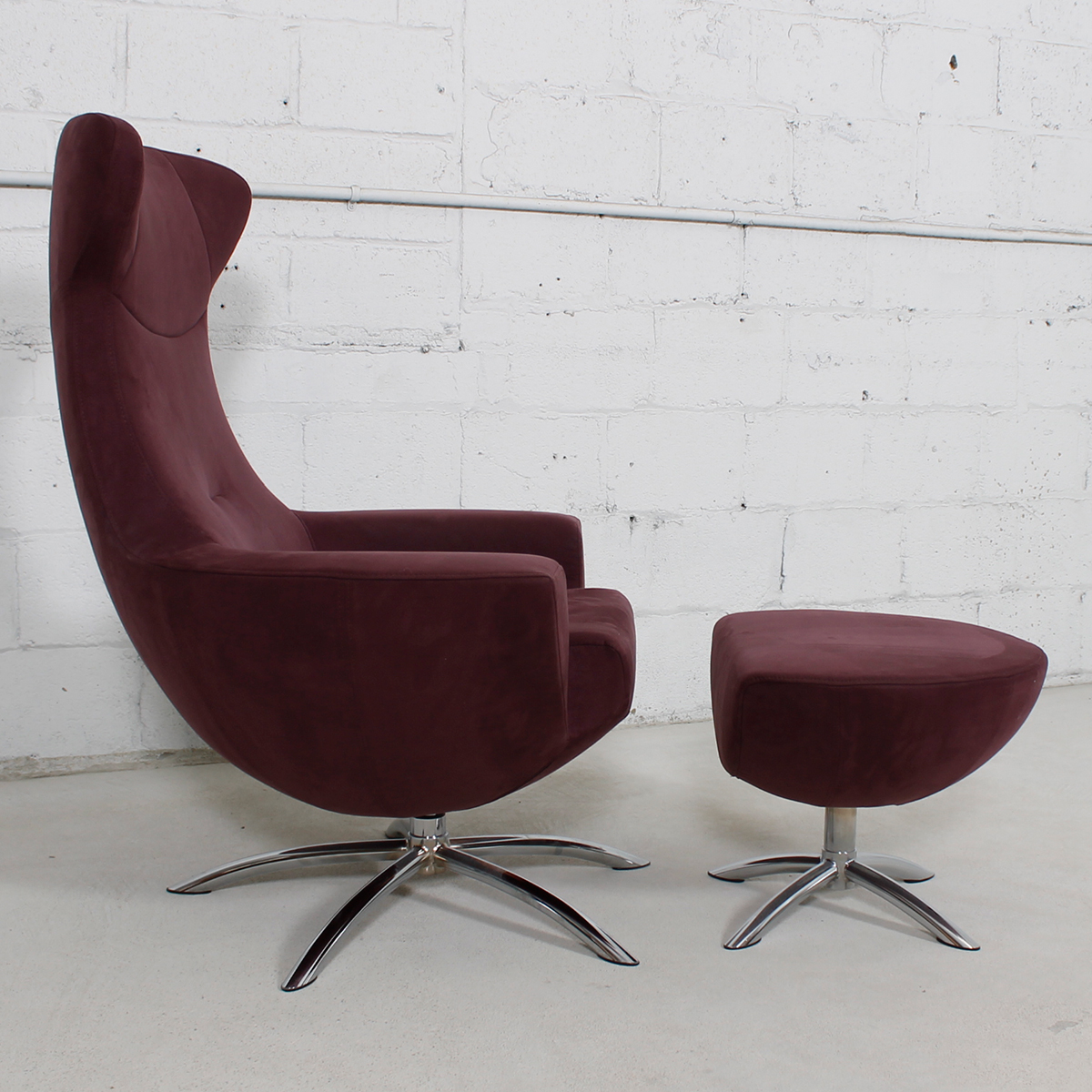To arrange purchase or for more information about the Modern Plum Upholstered Swivel Lounge Chair w / Ottoman please call us at 202.882.1648 or email us at info@modernmobler.com