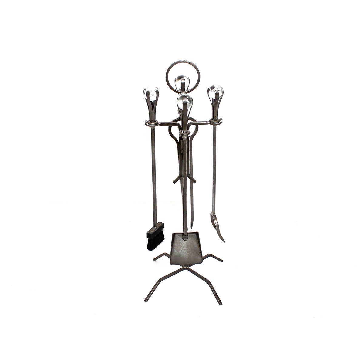 Sculptural & Elegant, This Andiron Set Is Accented w/ Eneryda Swedish Glass.