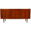 Nicely sized and with gracious proportions to the apron and slightly tapered turned legs, this piece is beautiful as well as highly functional in a dining room for its traditional use, or in a living room as a media cabinet for your TV and stereo equipment. Attributed to Arne Vodder, Denmark.