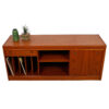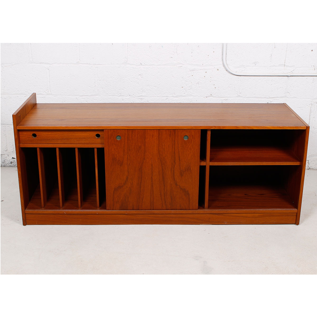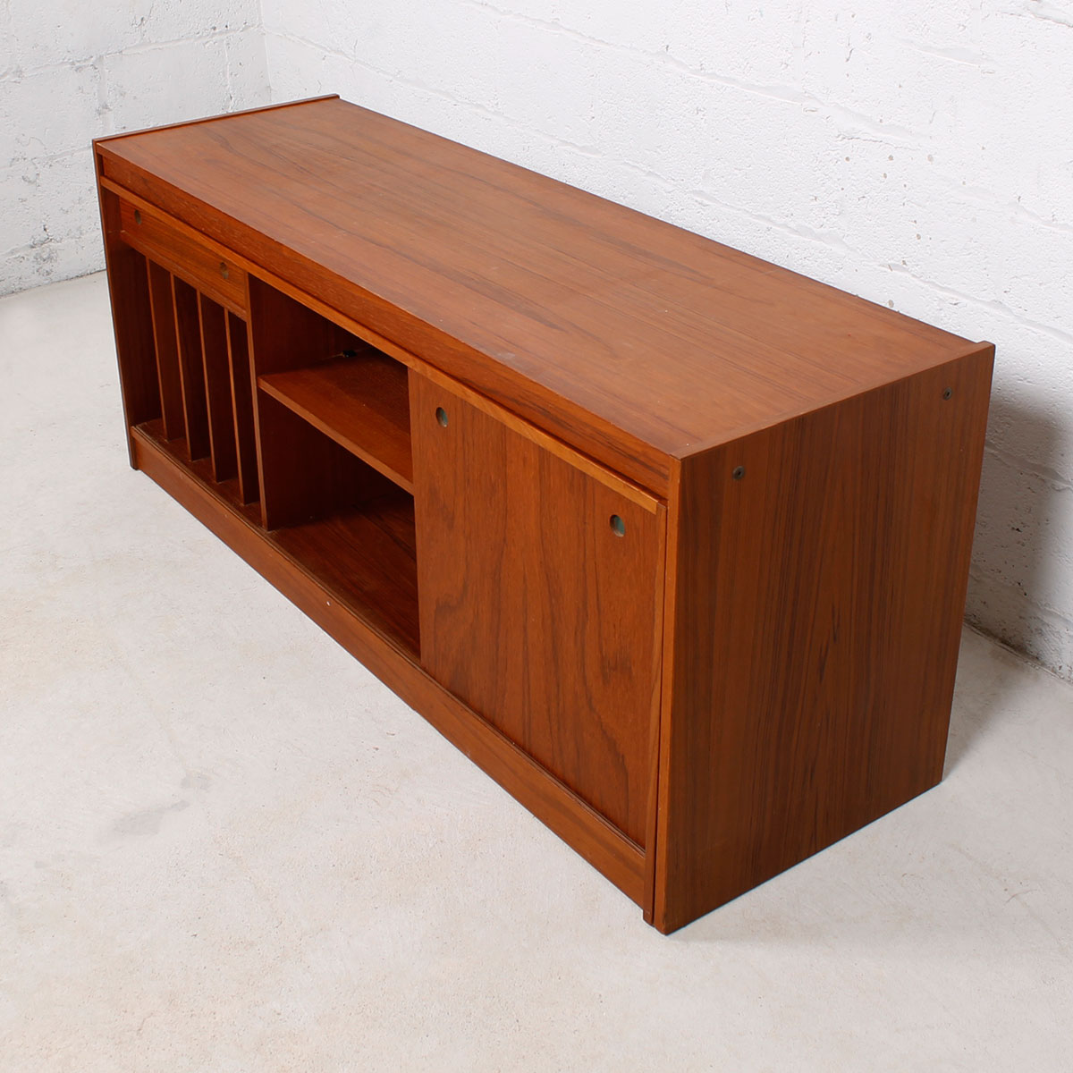 Functional Danish Modern Teak Cabinet Featuring a Shelf that Turns the Piece Into a Work Space. Leave It Up All the Time or Use Only When You Need It. Perfect piece to house media components. Great for Small Spaces.