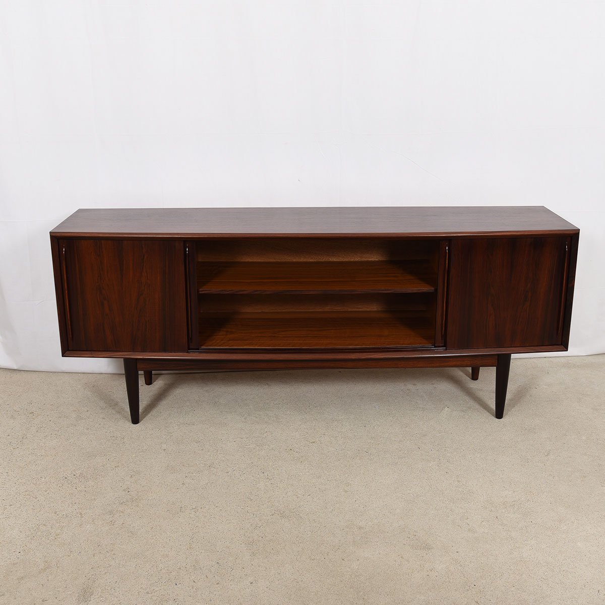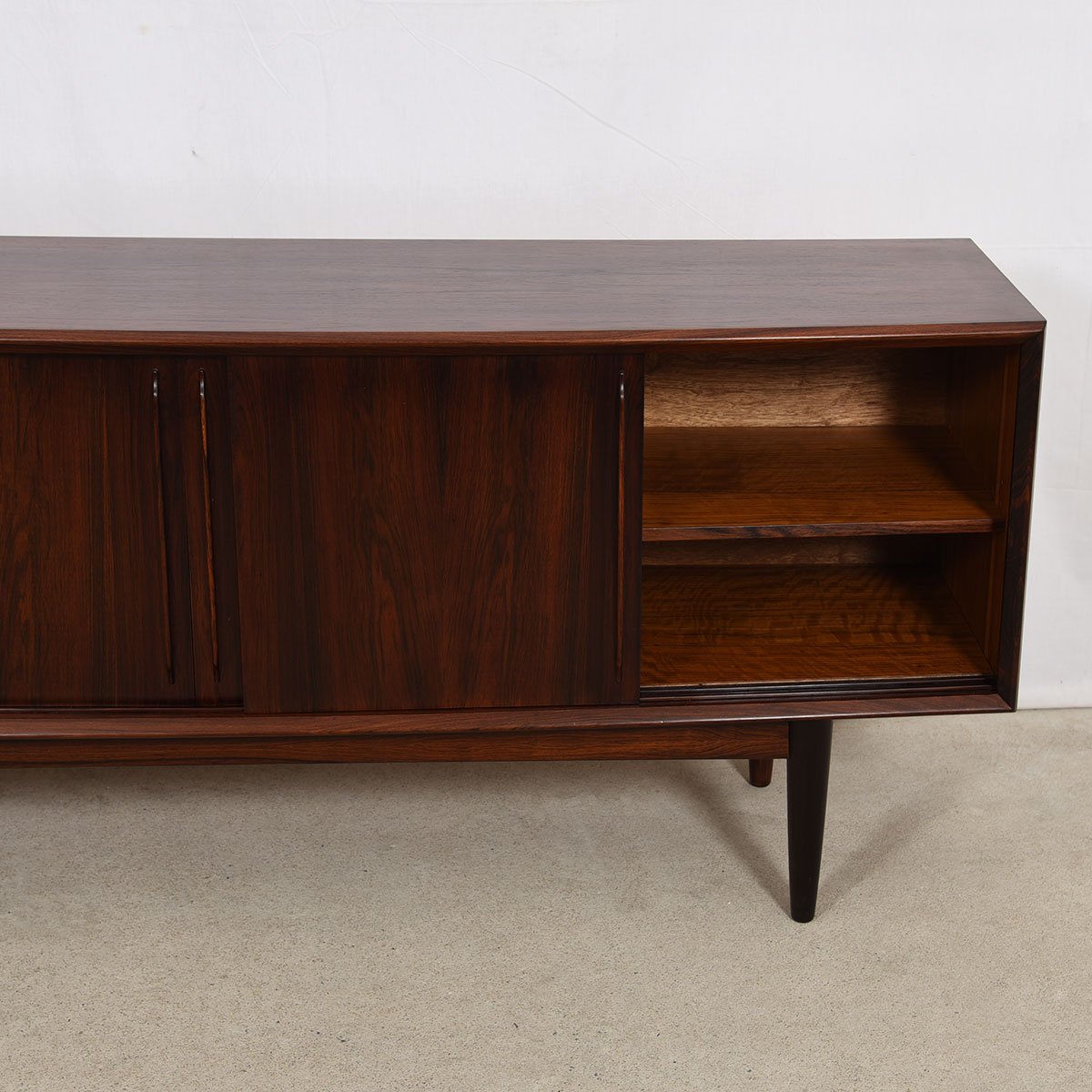 Out-Curved Danish Modern Rosewood Sliding Door Credenza