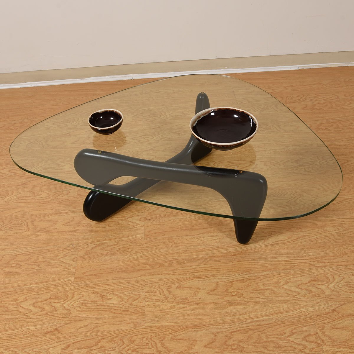 Wonderful Period Vintage Table Based on the Design by Isamu Noguchi for Herman Miller. Base is Large 3/4″ Thick Rounded Triangle Transparent Glass. The Very Definition of “Functional Art” the Form Compliments The Function of This Piece to Make This Table One of Understated Elegance.