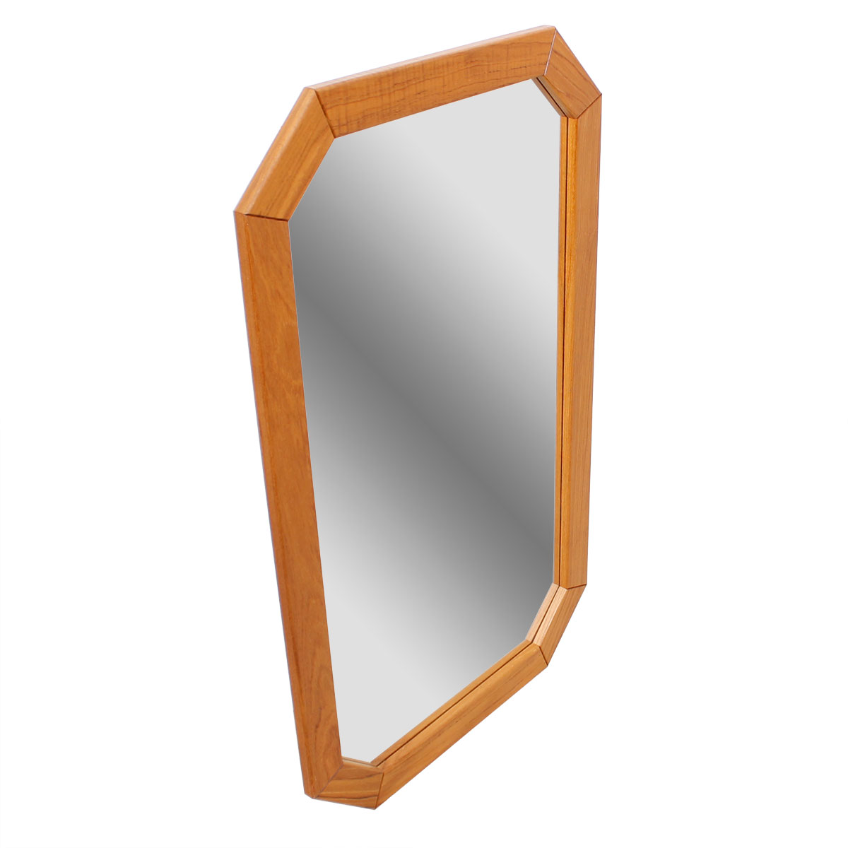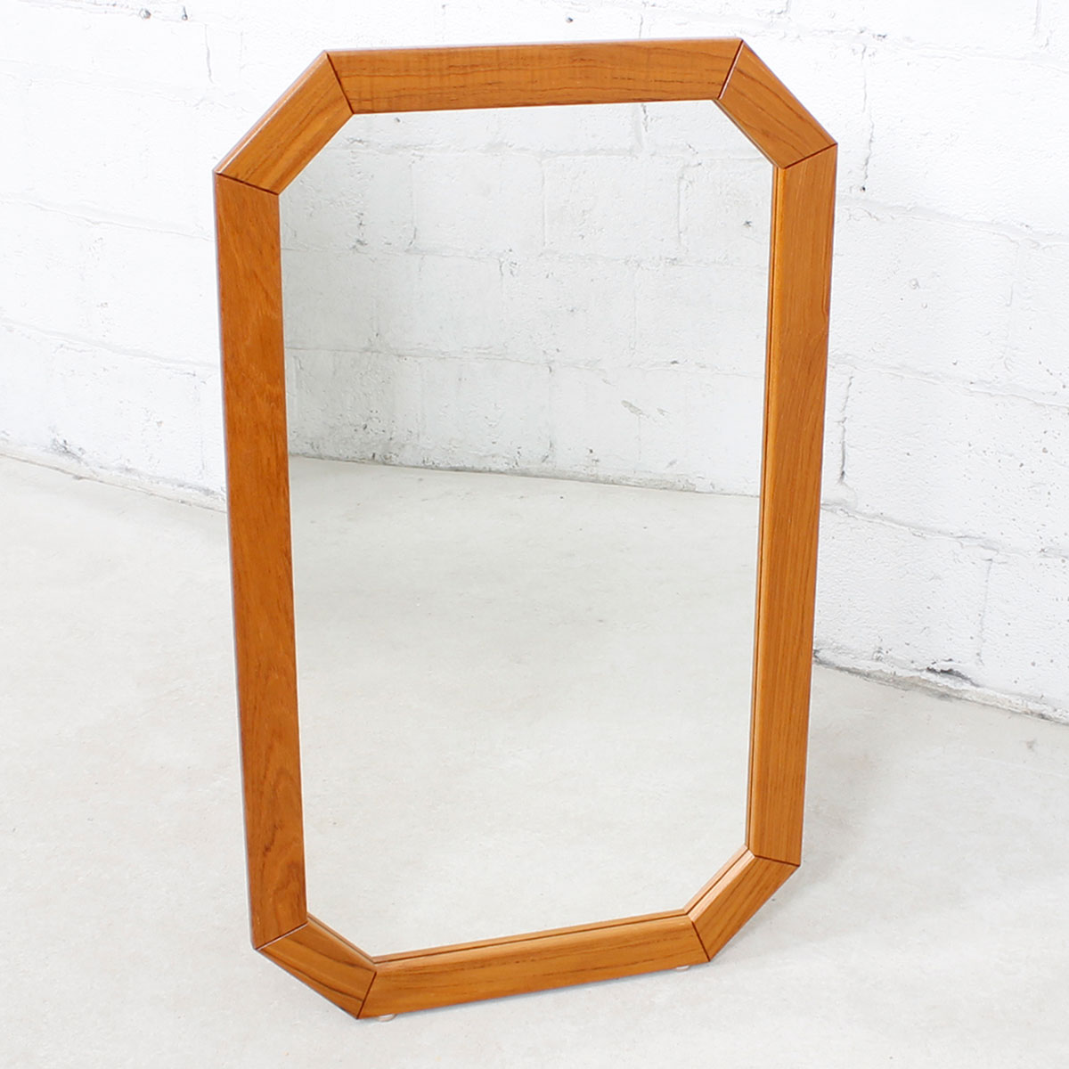 Brighten your room decor with this beautiful teak mirror from Nordisk Andels-Eksport of Denmark. It is a modified octagonal shape, a long rectangle with rounded corners. The joinery of each section of the octagonal becomes part of the design.
