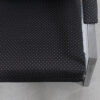 We are pleased to offer this handsome pair of chrome chairs with upholstered seats, attributed to Milo Baughman for Thayer Coggin. Into an open cube frame of chrome a fully upholstered back and seat have been placed at a slight angle for a dynamic look, as well as comfort. There is a touch of upholstery on the chrome arms. The upholstery, not original, is navy with a small white diamond print. High quality chairs that are solidly built, good looking and comfortable.