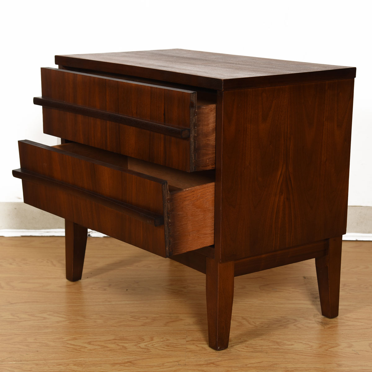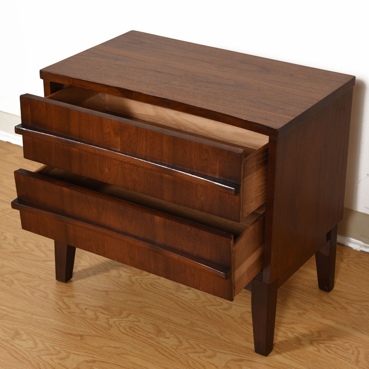 Pair Mid Century Walnut 2-Drawer Nightstands