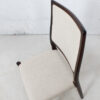 The cream-colored upholstery pops against the dark wood on this handsome set of dining chairs designed by Niels Møller. The set is comprised of two arm chairs and two side chairs. Each chair has an upholstered seat and backrest. The frame of the backrest, which is square, is open so the upholstery is seen on both sides – a look that lightens your room. The legs are turned. The proportions of the lines of the frame and the upholstery result in a chair that is very graceful. The width of each side chair is 20″ and the arm chairs are 23″ at their widest point.