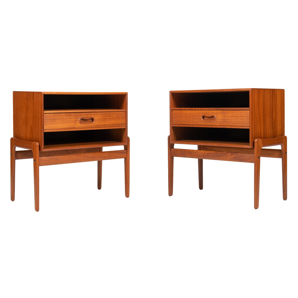 Pair of Arne Vodder Danish Modern Teak End Tables | Nightstands w: Adjustable Drawers.