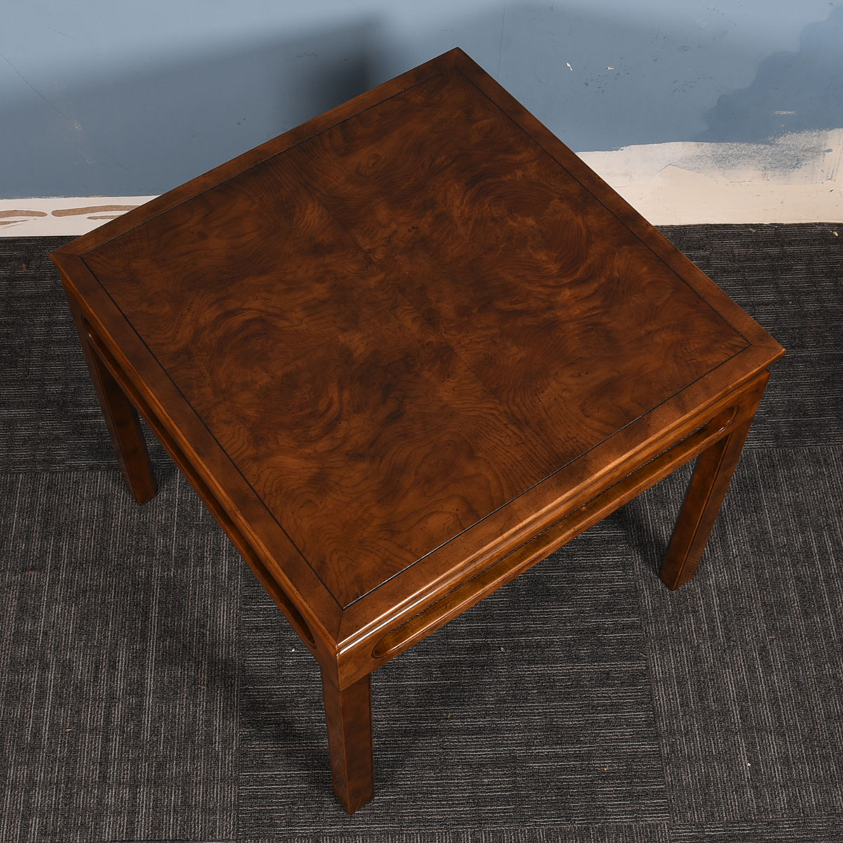 - Stunning burled-elm figuring on table tops will set off your finest lamps and objects