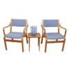 Here is a handsome pair of accent chairs with blond wood and blue upholstery.