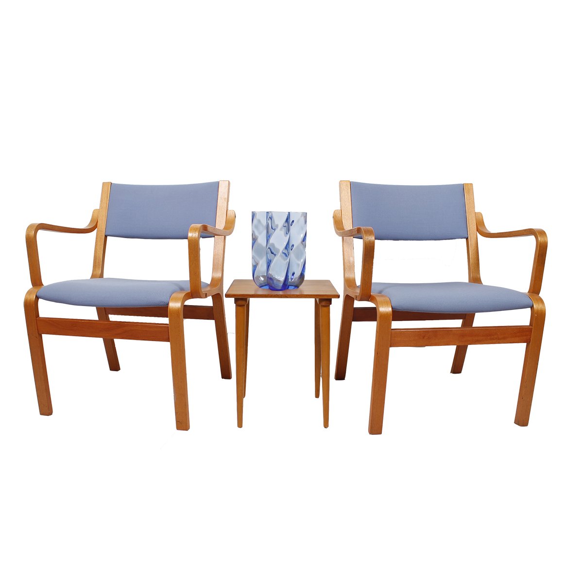 Pair of Bentwood Arm Chairs w. Blue Upholstery (from the Royal Danish Embassy in DC)