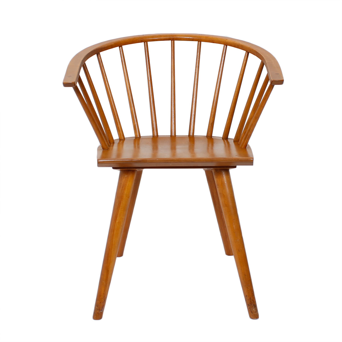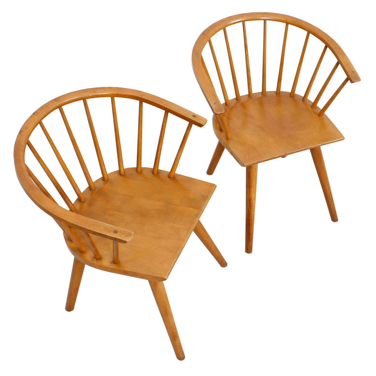 Designed by Russell Wright for Conant Ball. Solid construction, barrel back chairs that are a modern twist on the windsor back style.