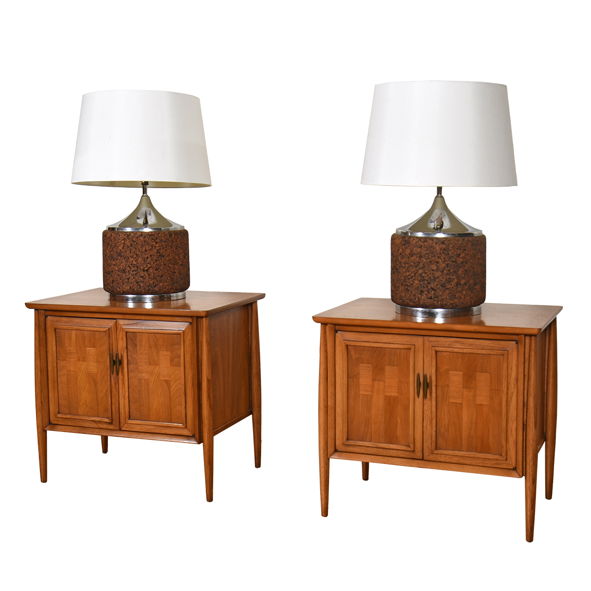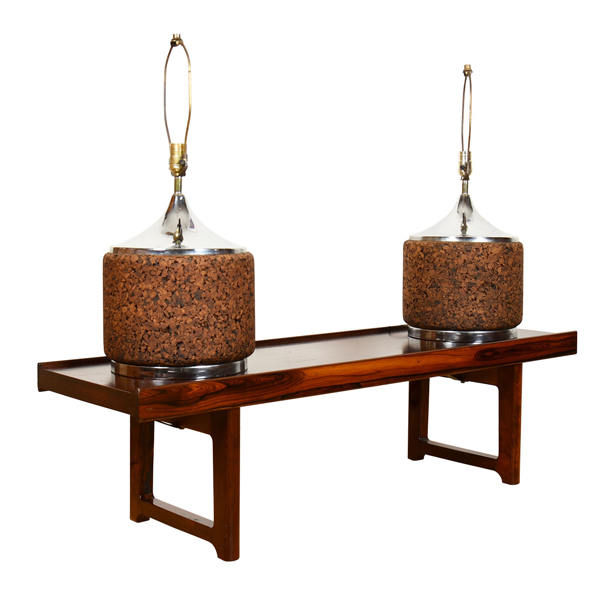 Pair of Cork and Chrome Mid-Century Lamps