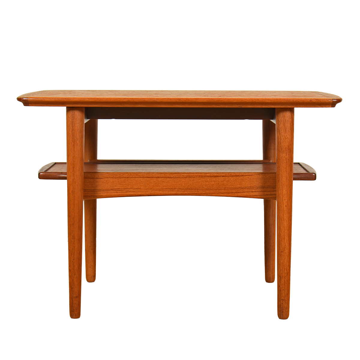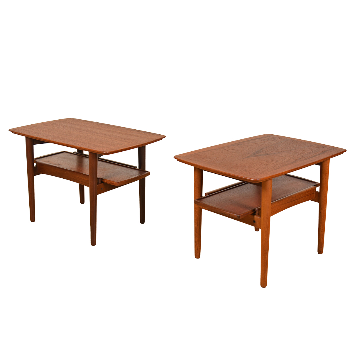 Pair of Danish Modern Teak End | Side-Accent Tables w Serving Tray | Shelf