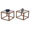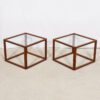A glass insert on the top of these cube-shaped frames of teak to create an arresting pair of accent tables. Nicely sized for small spaces, these take up virtually no visual space.