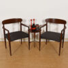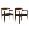 Gorgeous old pair of Danish arm chairs. Very refined back rest. Seat is upholstered in black. Use these as accent chairs around in the living room, then put them at the table when extra seating is needed.