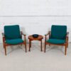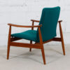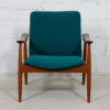 Pair of Finn Juhl Danish Modern Teak + Teal Easy Chairs