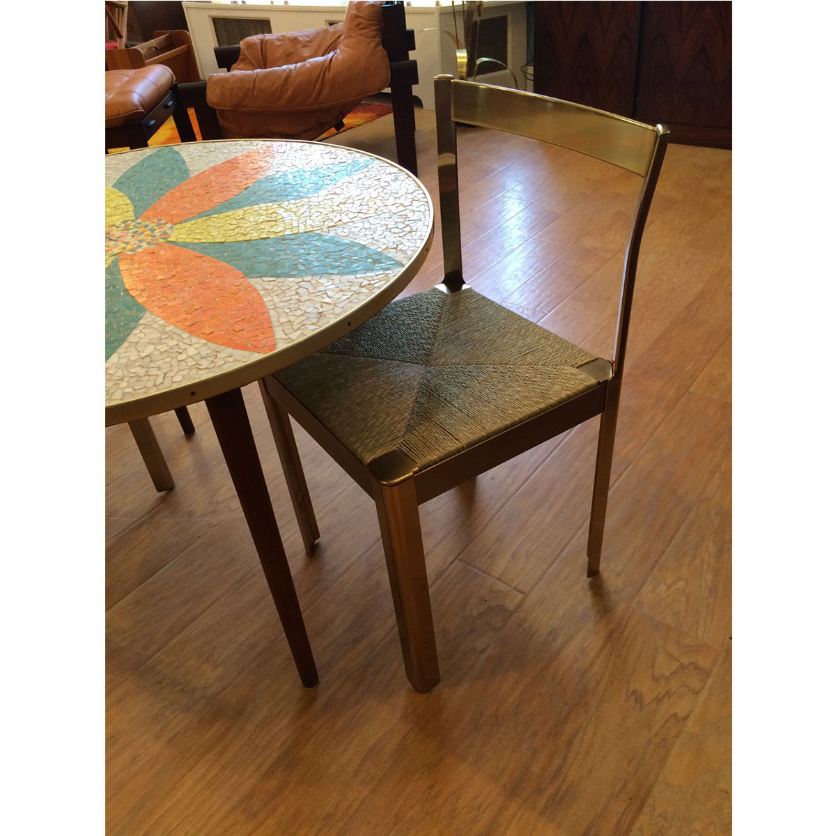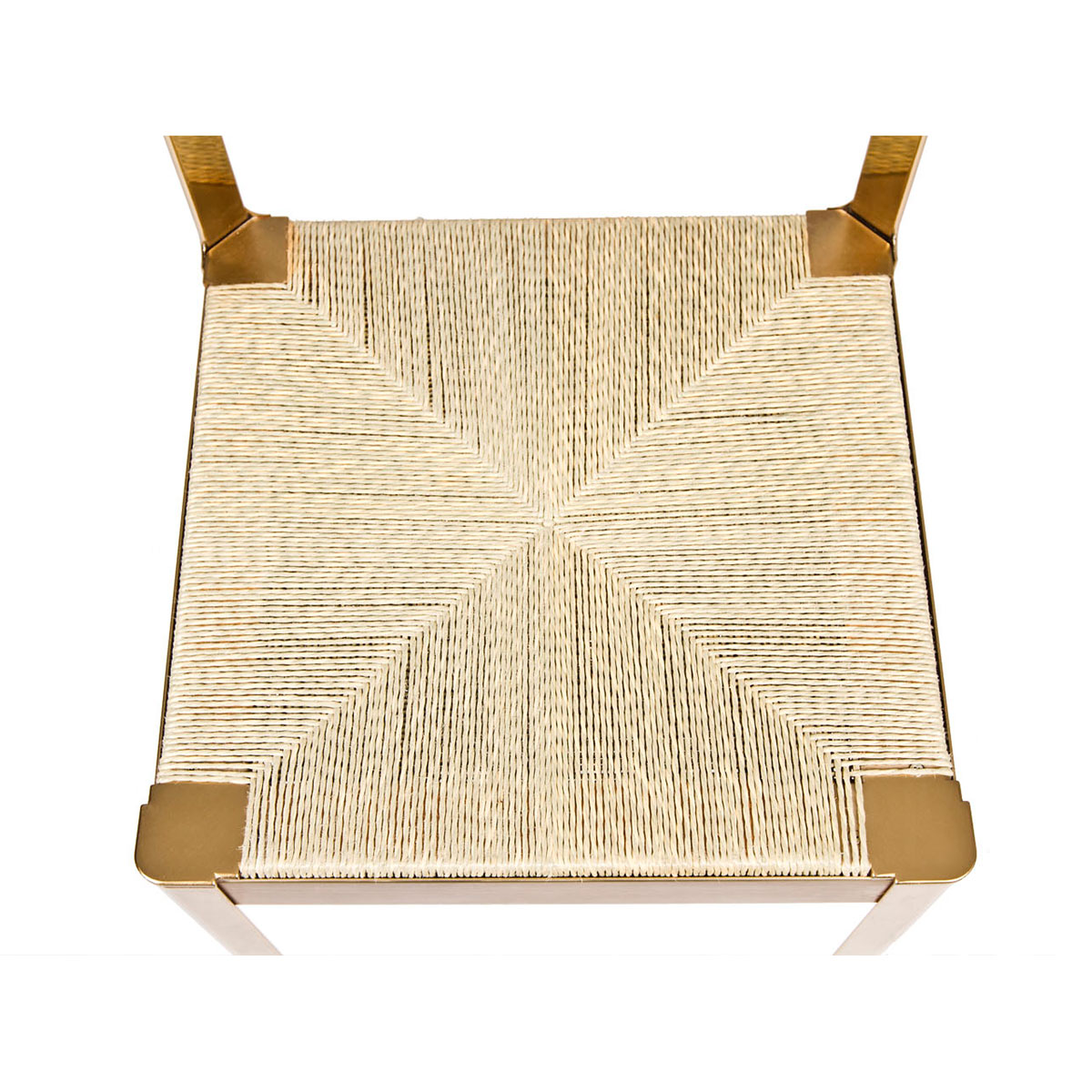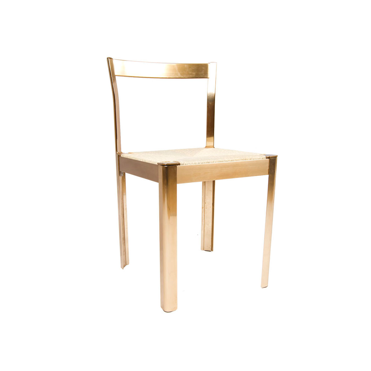 A Classic mid century Italian design that’s streamlined in form. Brass anodized aluminum chairs with cords are the perfect pair to set of any space and give the flair and sophisticated sense of refinement that’s required!