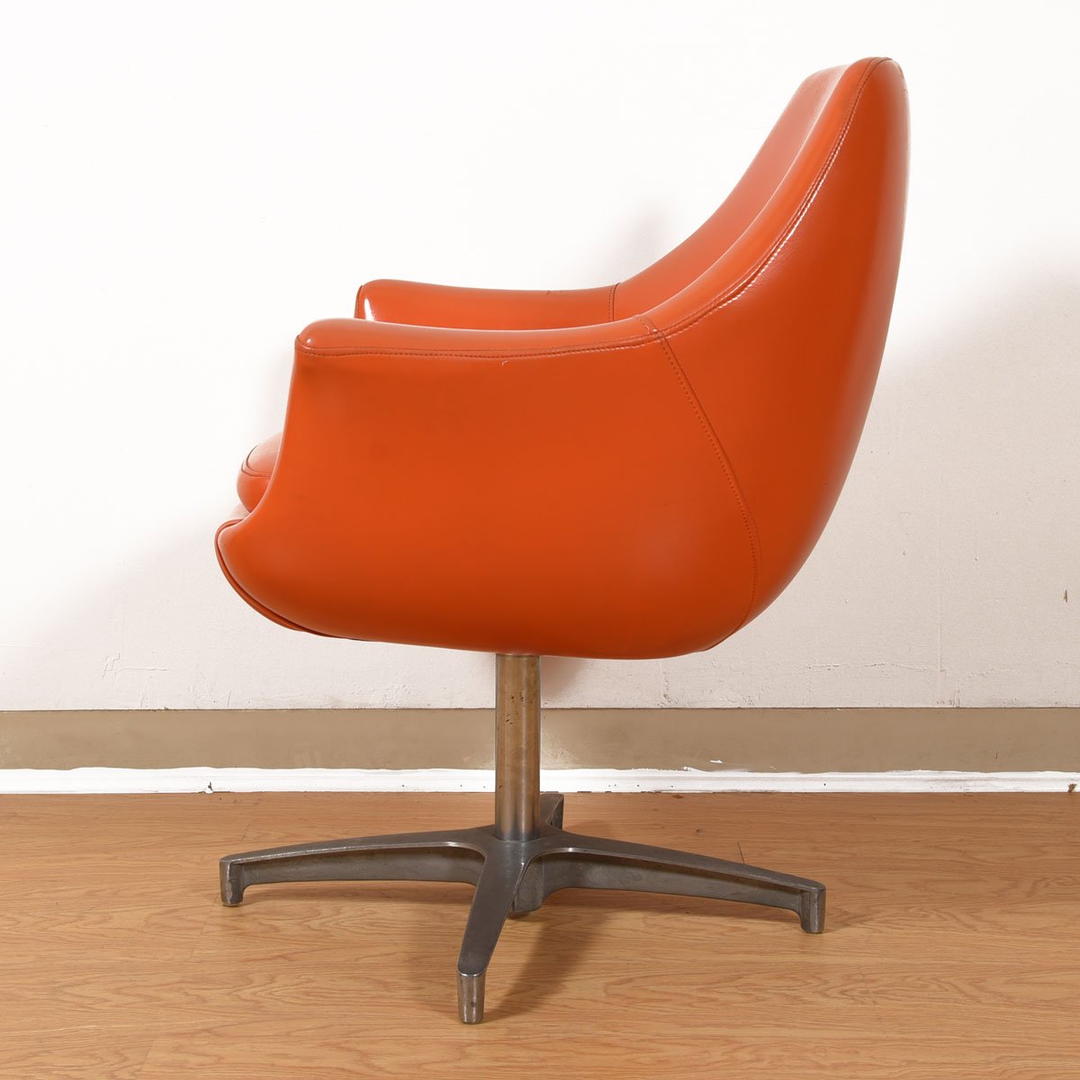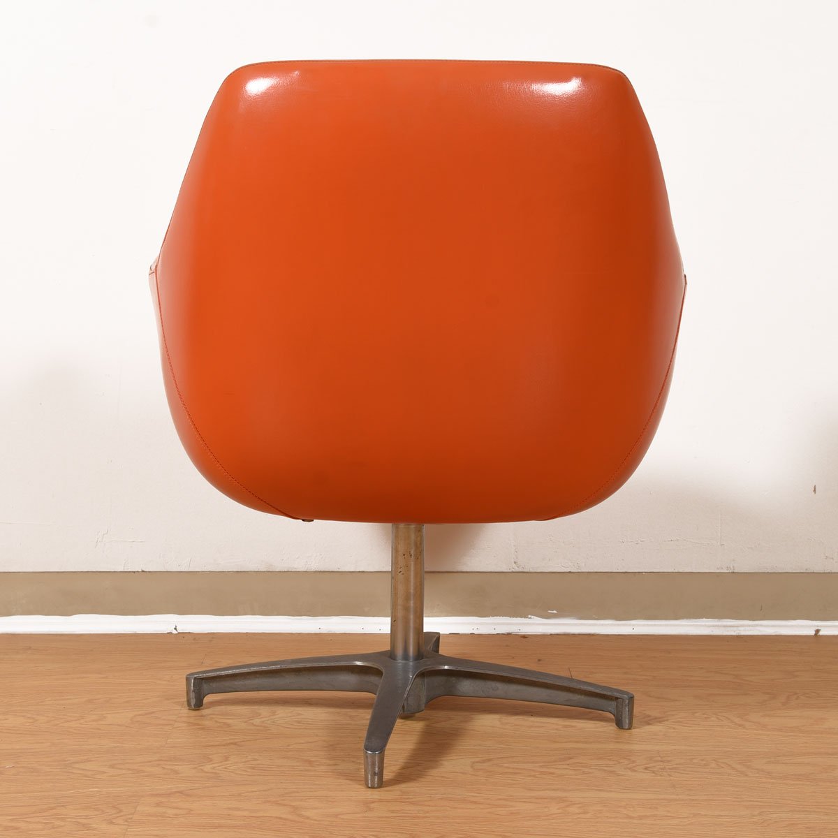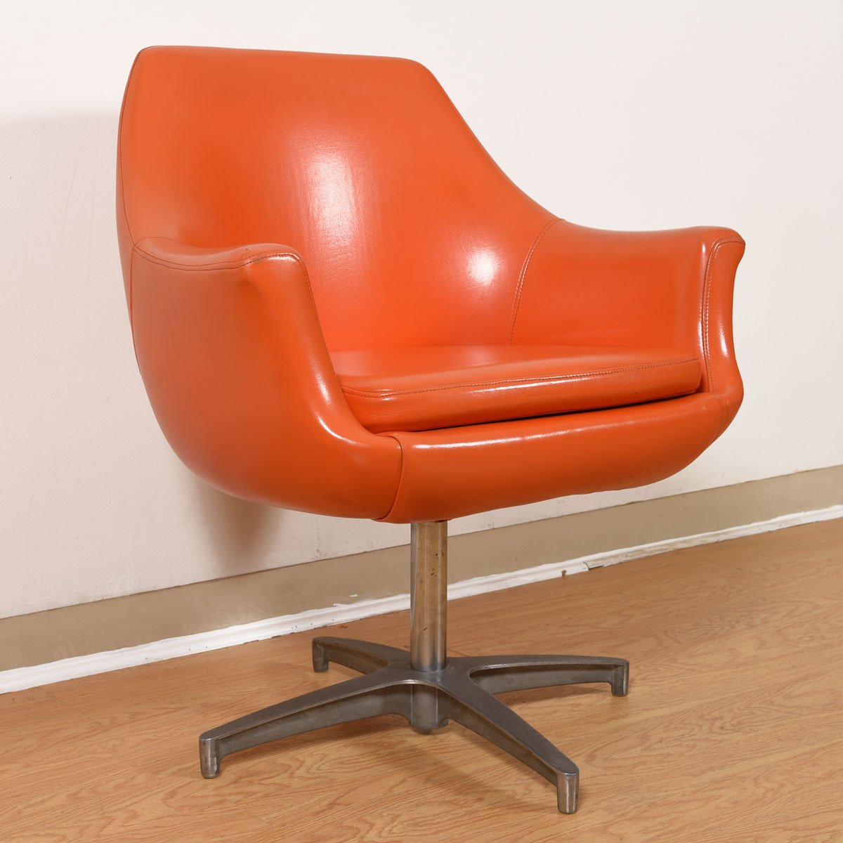 They’re mod, they’re orange, they swivel *and* they’re comfortable — what more do you need in a chair? These Overman of Sweden pod chairs have it all! The chrome base terminates in a four-pointed star. Sure to perk up your space with their cheerful presence!