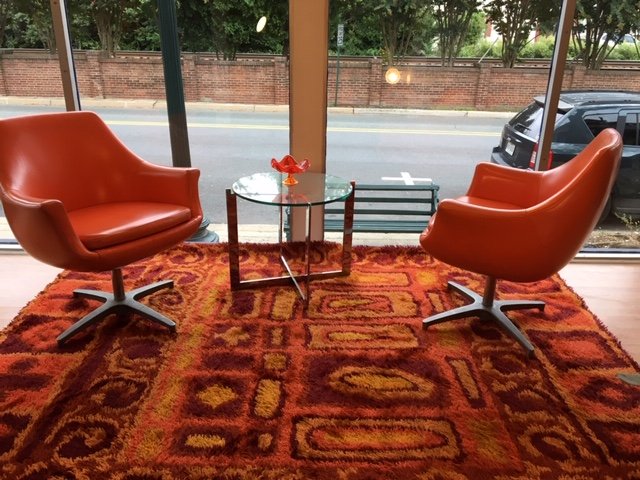 To arrange purchase or for more information about the Pair of Mid Century MOD Orange Pod Chairs please call us at 202.882.1648 or email us at info@modernmobler.com