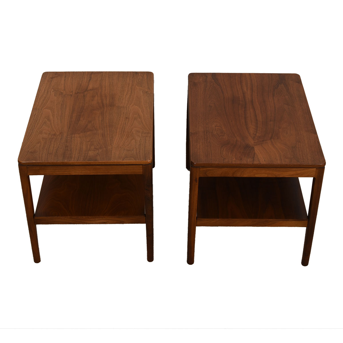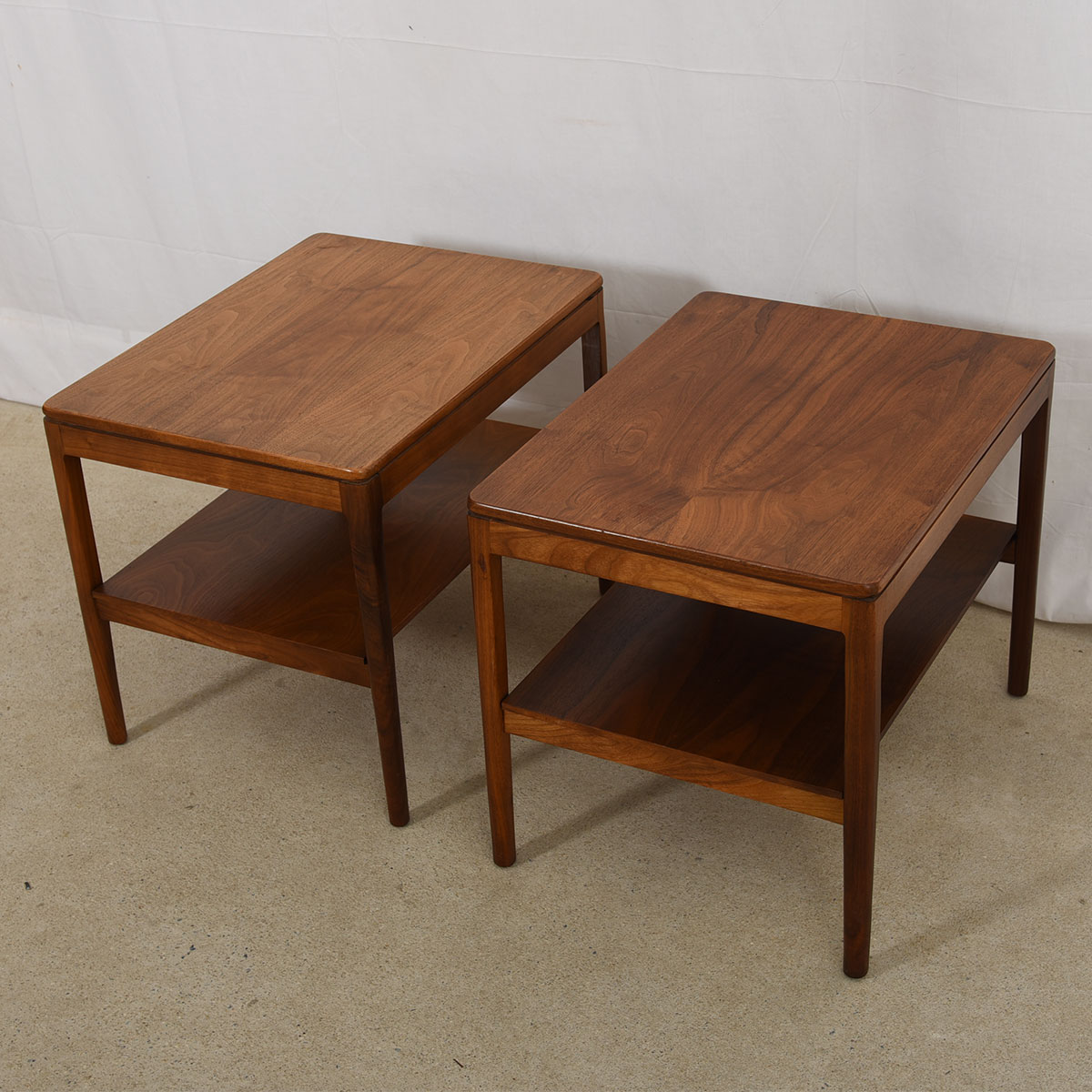 Pair of Mid Century Walnut End / Accent Tables w/ Shelf