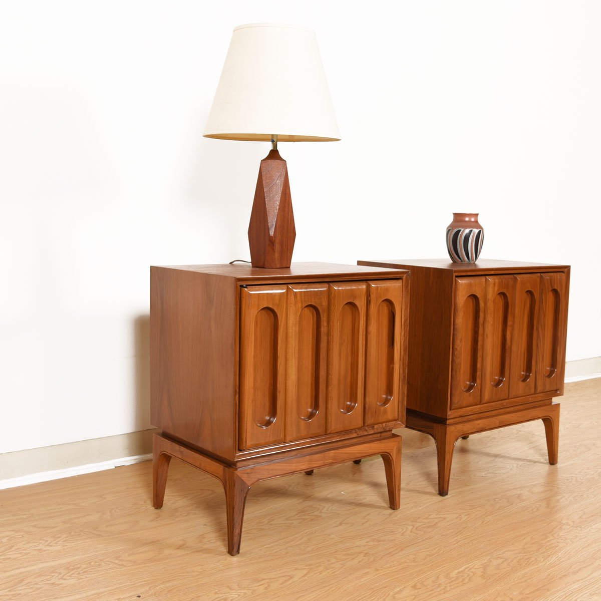 Pair of Mid Century Walnut Nightstands / Side Tables