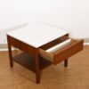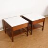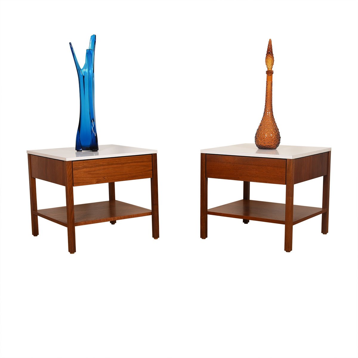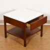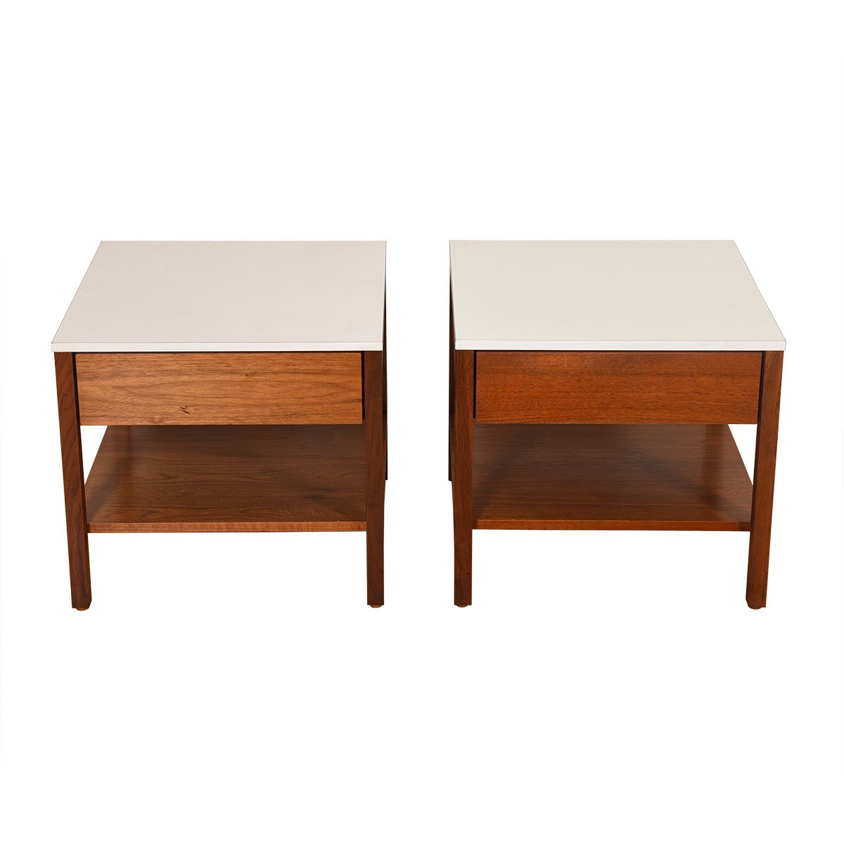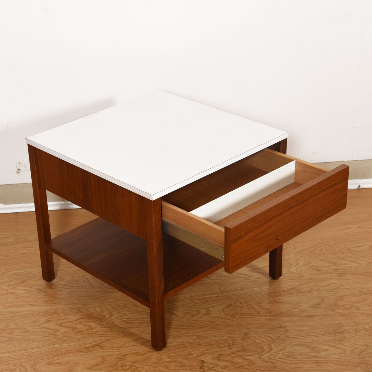 Pair of Mid Century Walnut White Top Nightstands / Side Tables by Knoll.