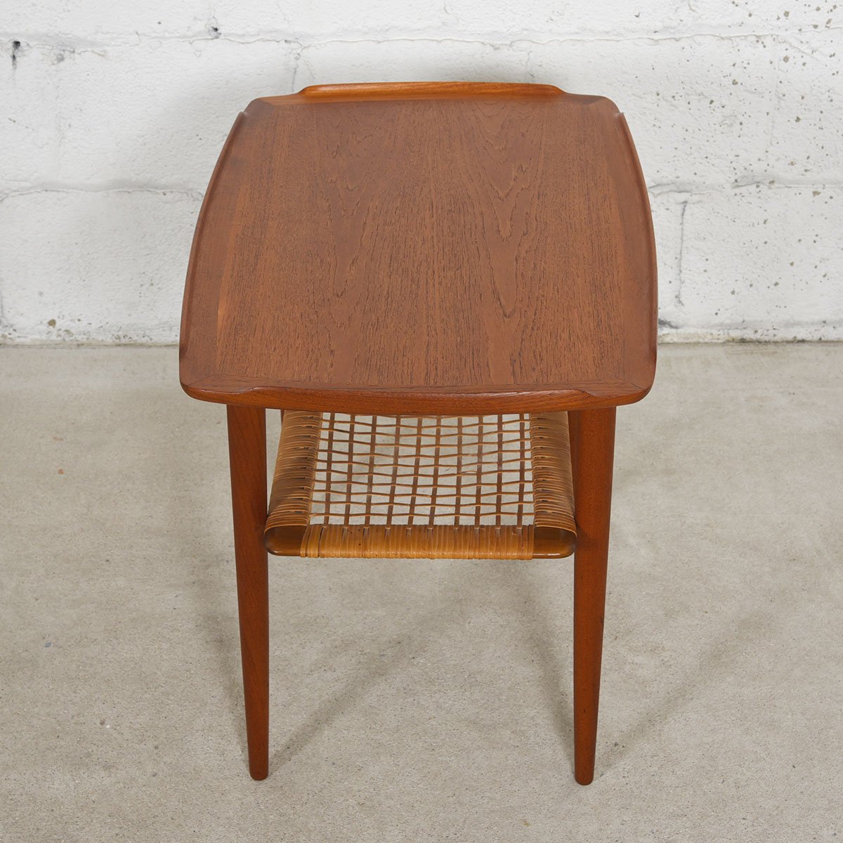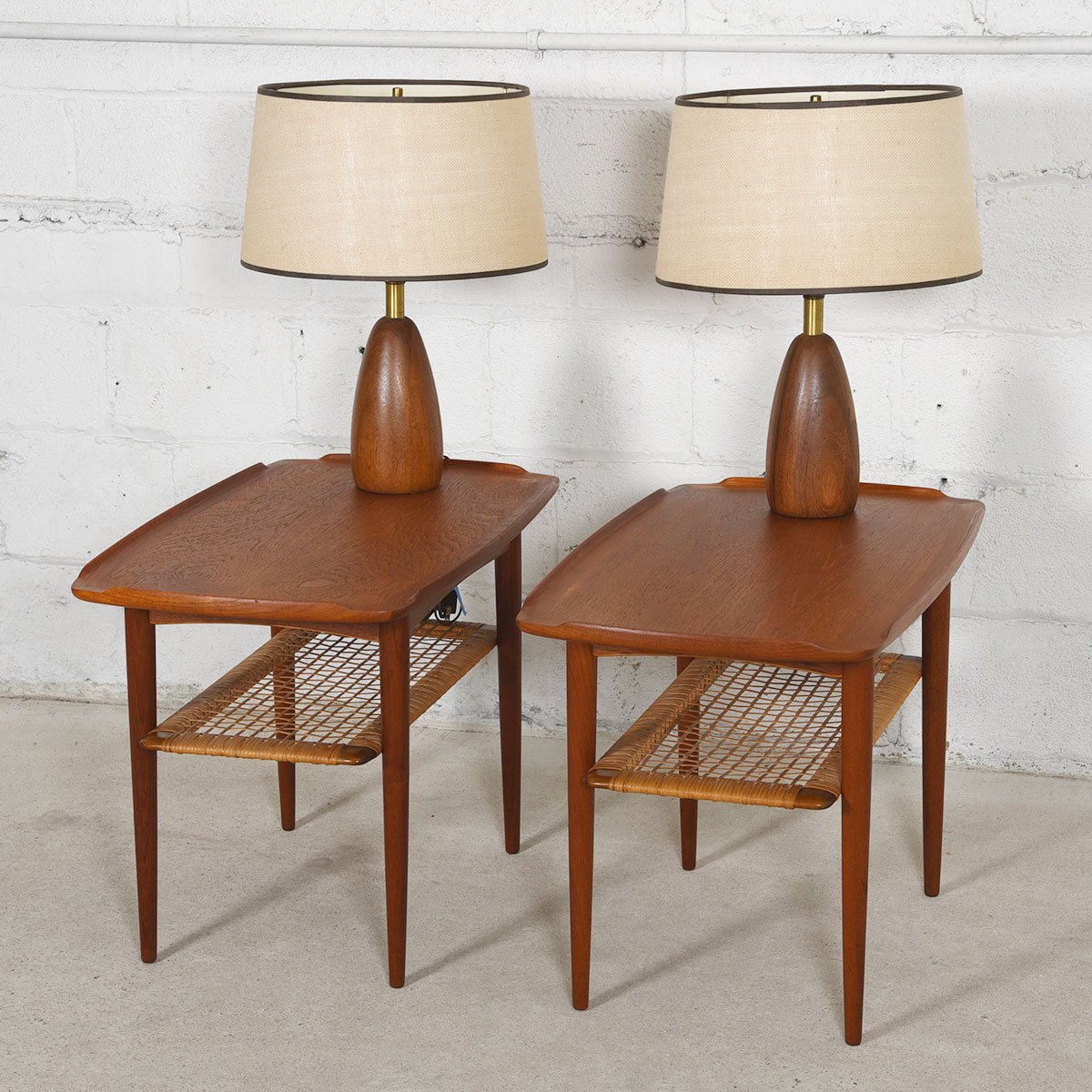 Delightful Pair of Danish Modern Teak & Cane End Tables