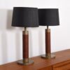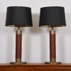 Pair of Solid Wood and Patinated Bronze Column Table Lamps