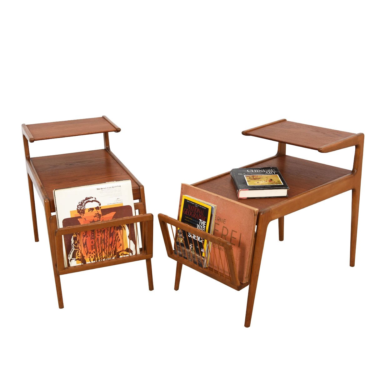 Rare Pair of Ostervig Teak Side Tables w/ Removable Magazine Racks