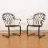 Looking to furnish your garden or patio in MCM style? Here is a fun pair of vintage wrought iron arm chairs by Woodard.The back has tradional shape with details that have mid-century flair. The legs have a bit of “give” that makes the seats rock gently.