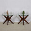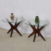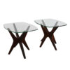 Pair of Vladimir Kagan Style Walnut & Glass ‘Jax’ Accent Tables
