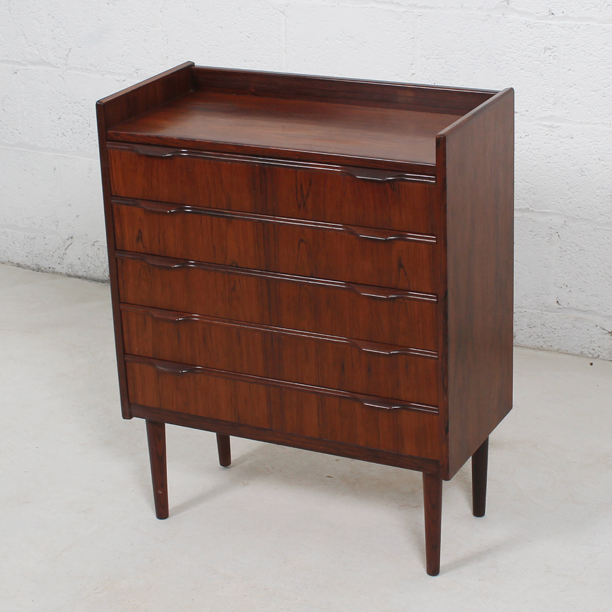 Petite Danish Rosewood 5 Drawer Hallway Chest / Compact Dresser