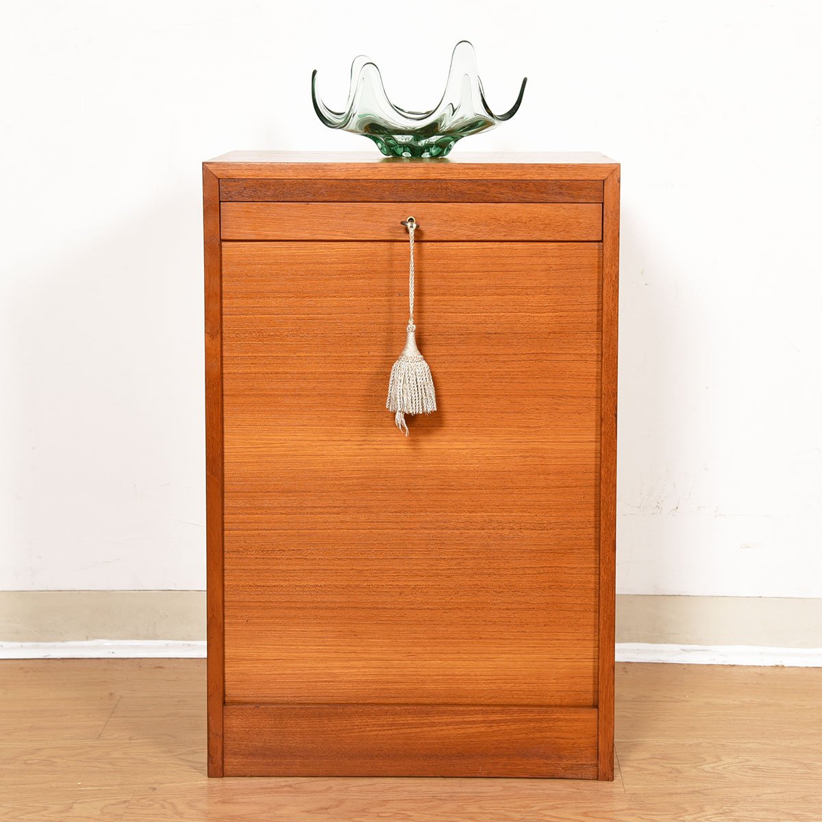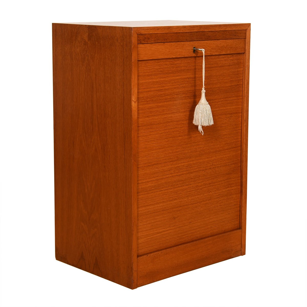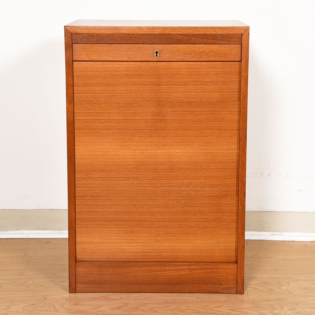 » » » Petite Danish Teak Locking Tambour Door Filing Cabinet