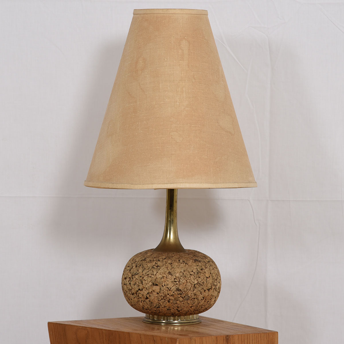 Petite Mid-Century Modern Cork + Brass Lamp