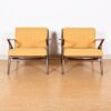 - Wood frame with original cushions upholstered in a pleasing golden yellow