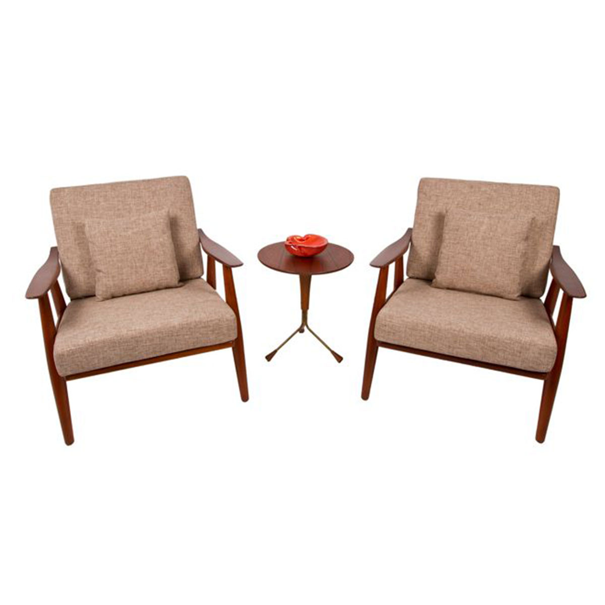 Purchased in 1959 Directly in Copenhagen. From the Original Owner who had them Professionally Reupholstered in a Cotton Fabric Similar in Tone to Belgium Linen w/ Matching Throw Pillows! Appropriately Marked.