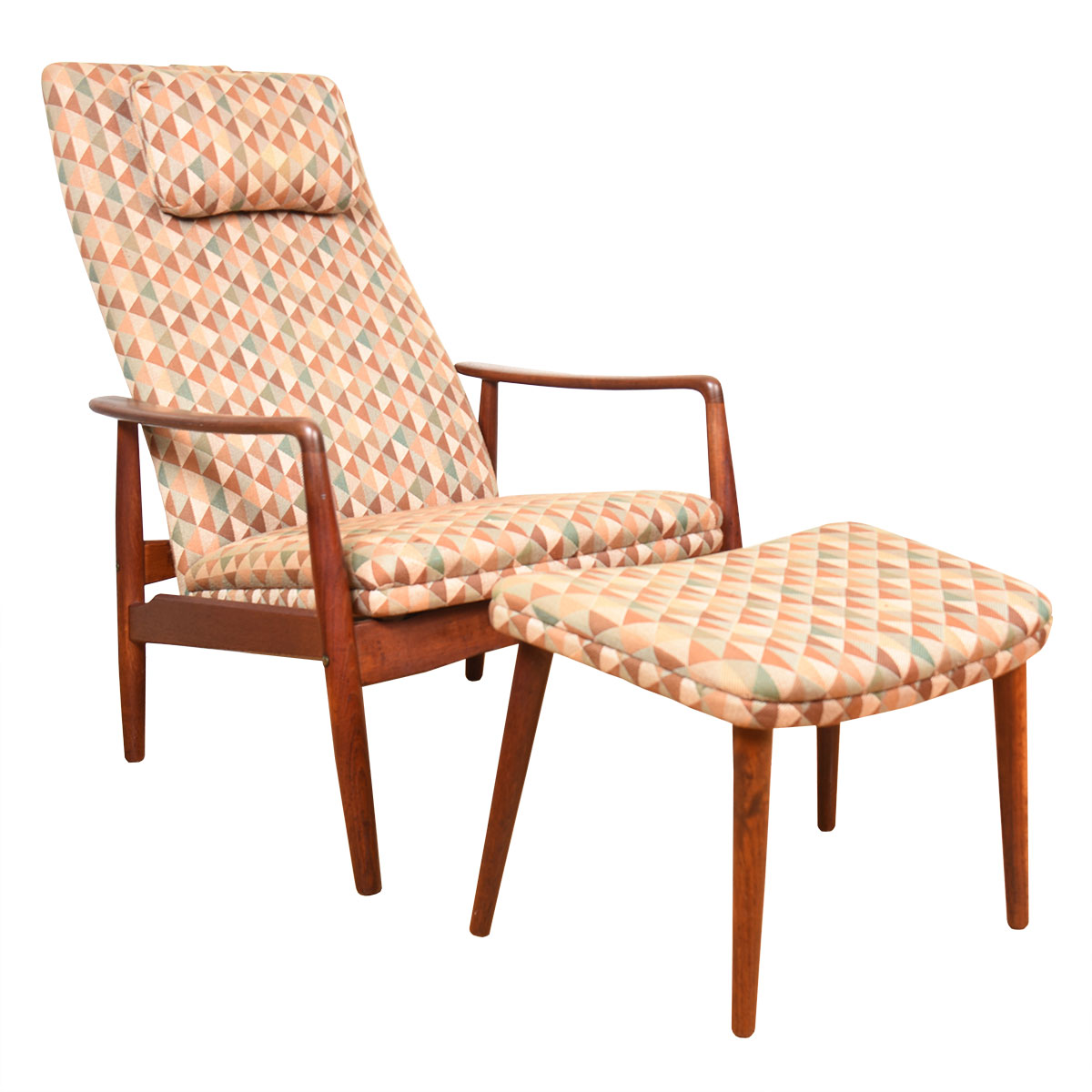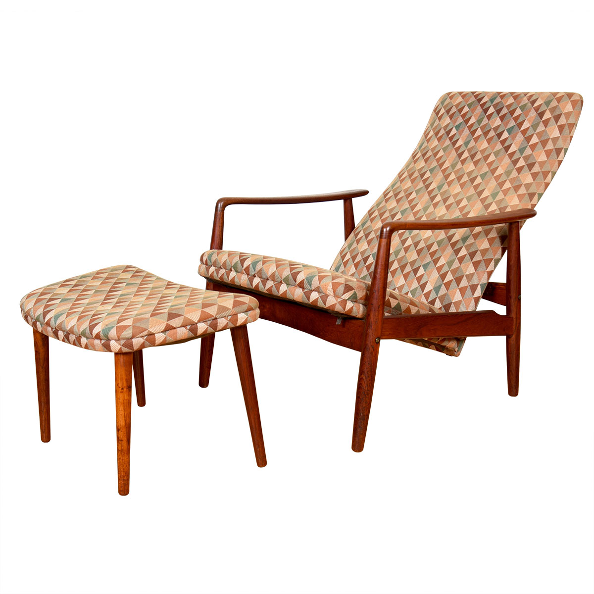Reclining Norwegian Teak Lounge Chair + Ottoman