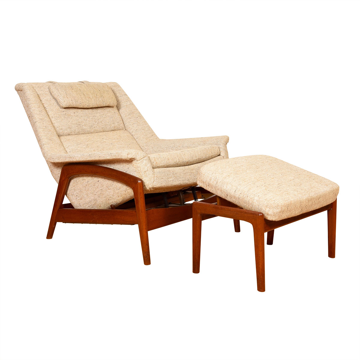 » » » Reclining Swedish Teak Lounge Chair + Adj Ottoman by Folke Ohlsson for DUX