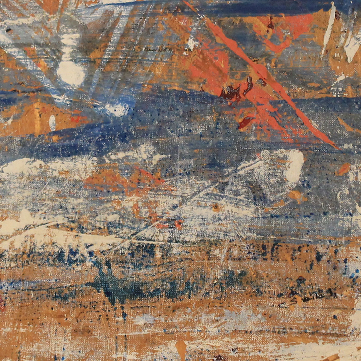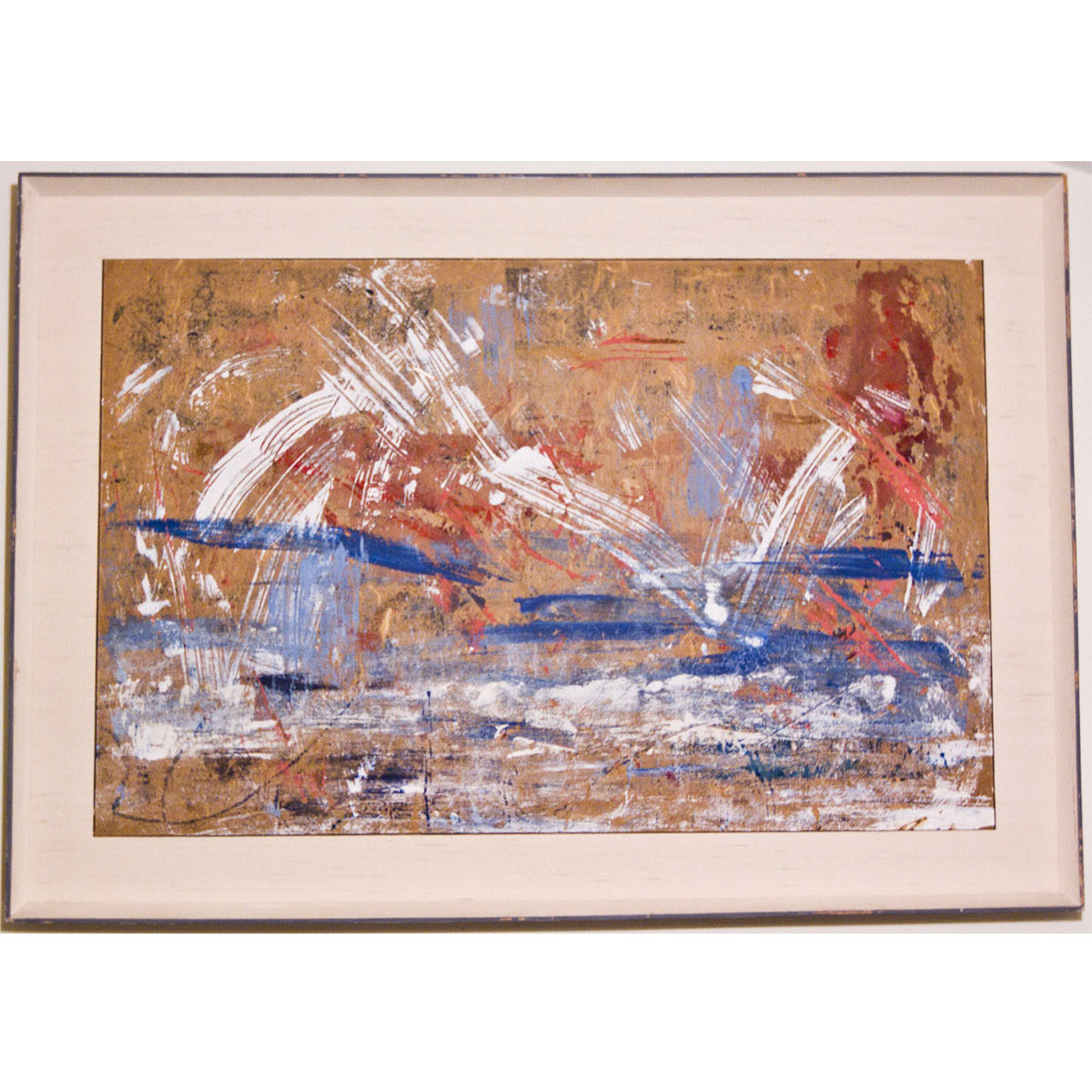 The brush strokes of red, white, and blue across the neutral background allow this painting to show a full display of bold colors that guarantee to make it a lively conversation piece in your space.