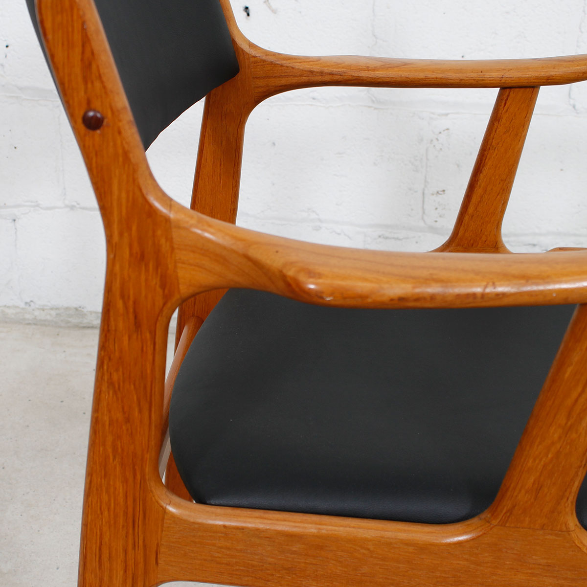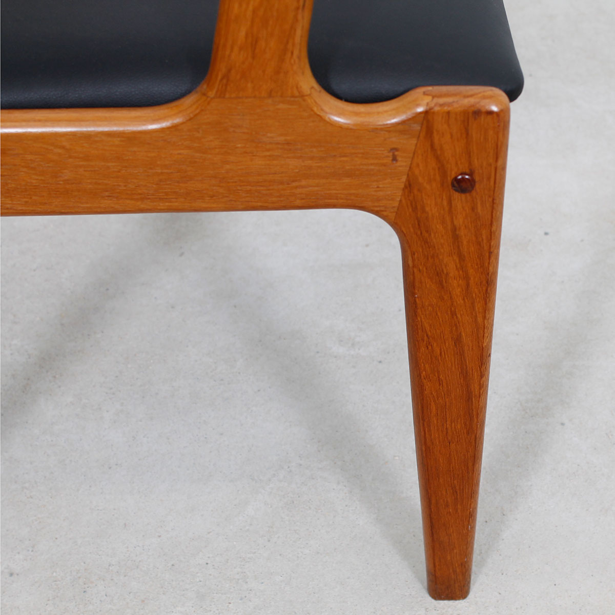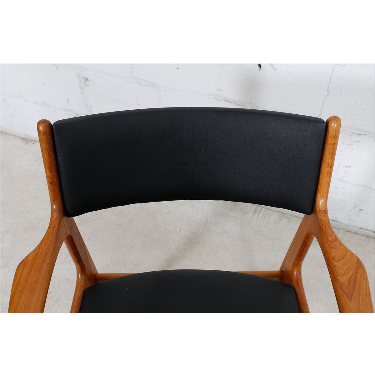 A Pair of Johannes Andersen for Uldum Mobelfabrik (Attributed) Danish Teak Dining Chairs. In Warm Solid Teak. Re-upholstered In Our High-End Black Leatherette.