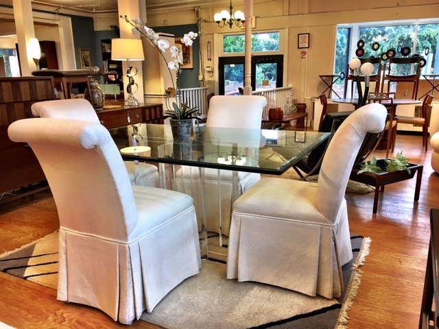 To arrange purchase or for more information about the Decorator Lucite and Glass Dining Table Set please call us at 202.882.1648 or email us at info@modernmobler.com