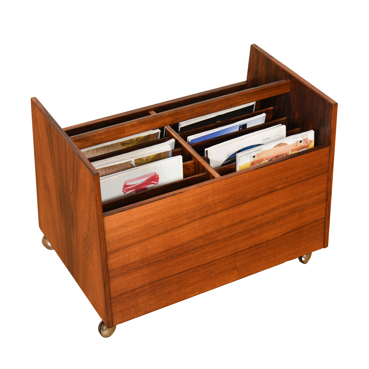 To arrange purchase or for more information about the Rolling Magazine Cart — Double Wide in Norwegian Rosewood please call us at 202.882.1648 or email us at info@modernmobler.com