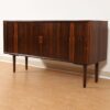 • Compact Rosewood Sideboard Featuring Tambour Doors that Slide Open to Reveal 4 Felt Lined Drawers & 2 Adjustable Shelves