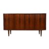 Perfect for use as a media cabinet, office credenza or a dining room sideboard. Luscious rosewood takes the spotlight on this minimalist Danish Modern piece.