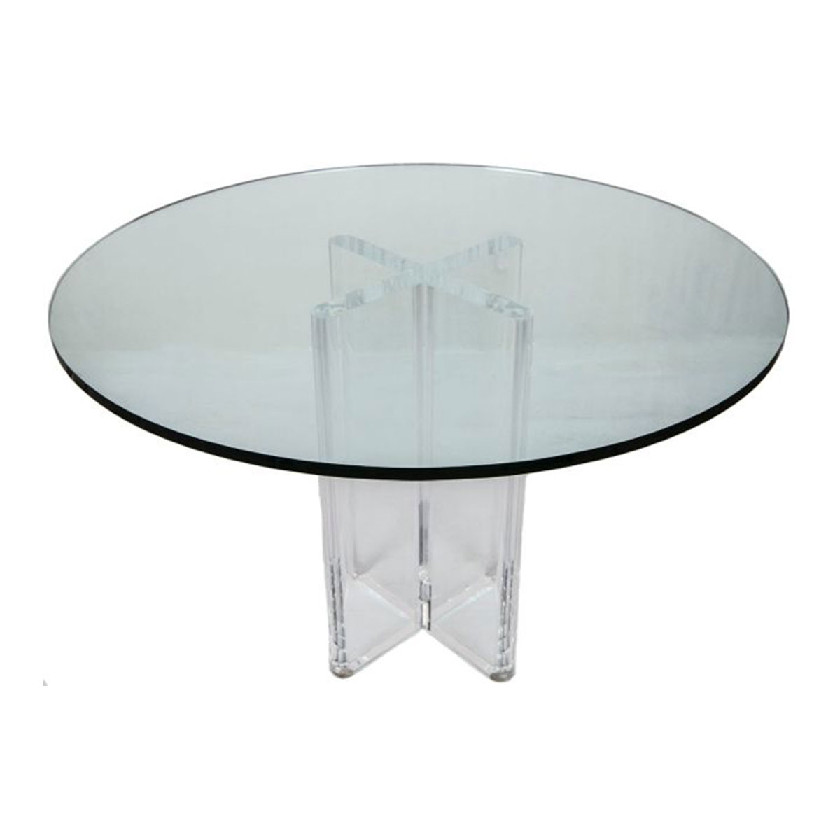 To arrange purchase or for more information about the Round Glass and Lucite X-Base Table please call us at 202.882.1648 or email us at info@modernmobler.com
