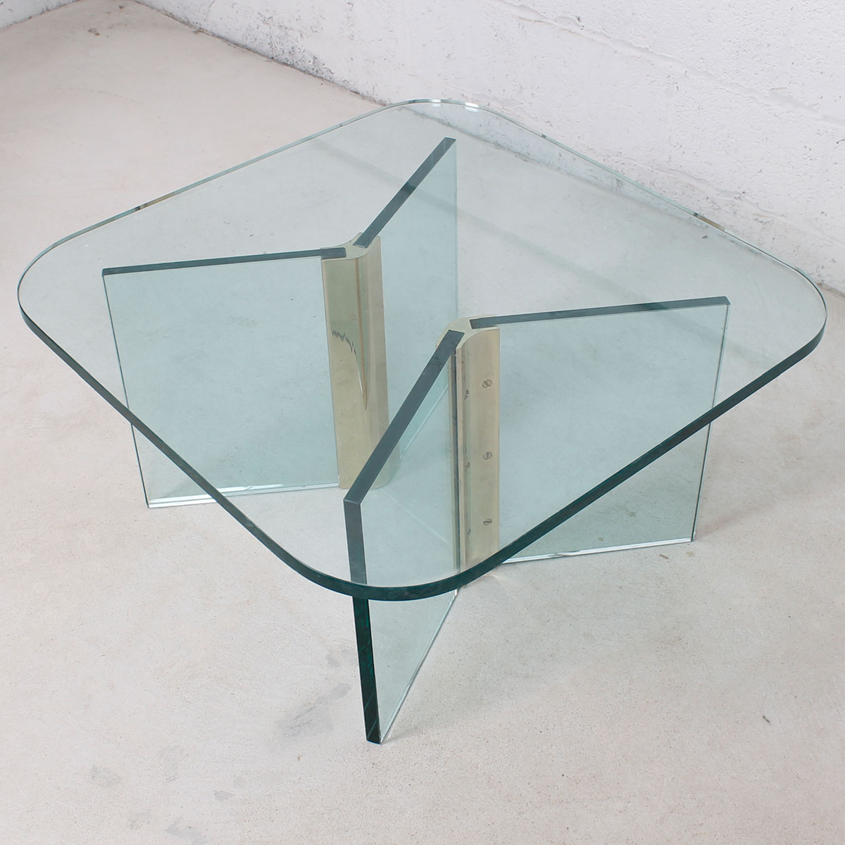 A Stylish ‘Rounded Square’ Glass & Brass Coffee Table Attributed to Leon Rosen for the Famous Pace Collection, NY.