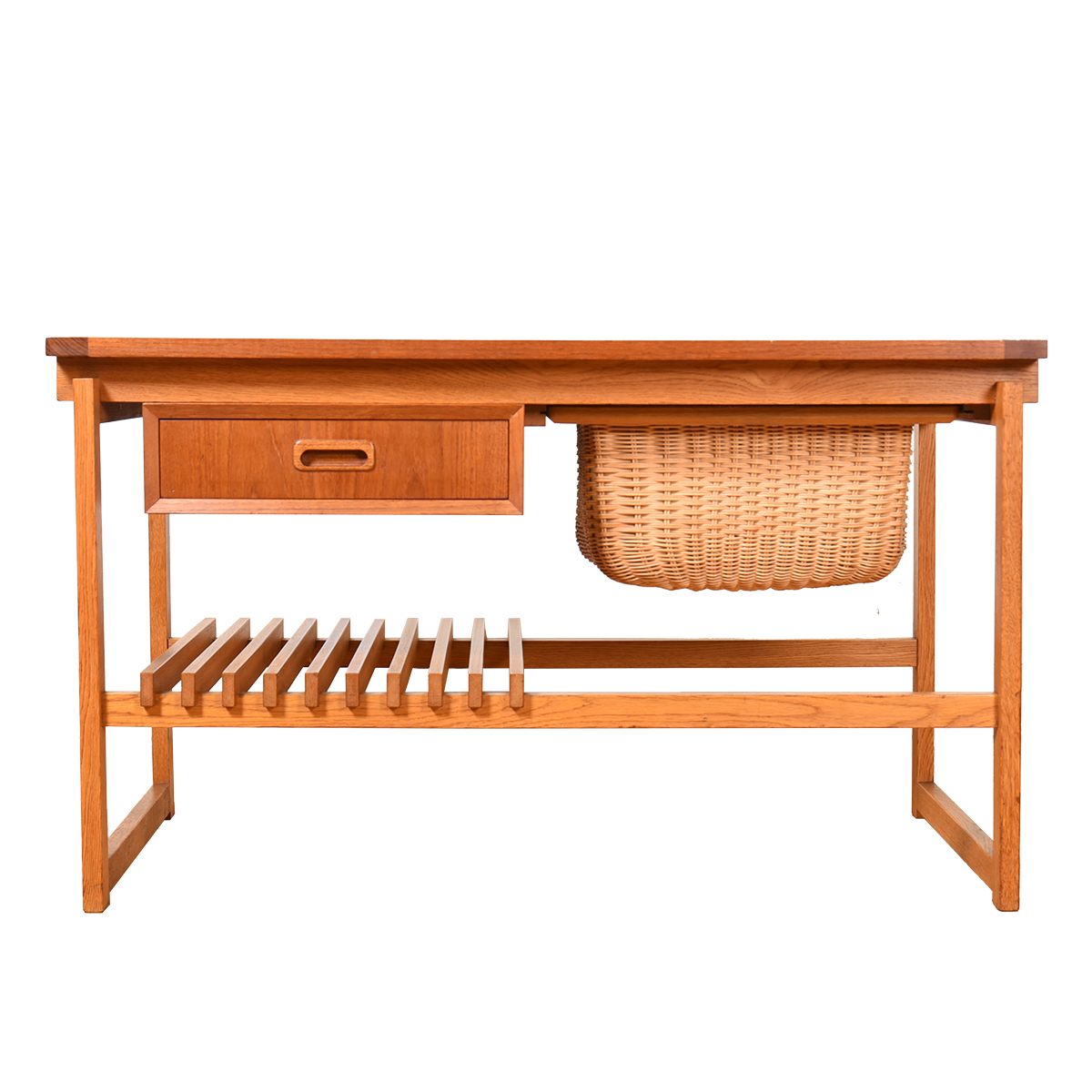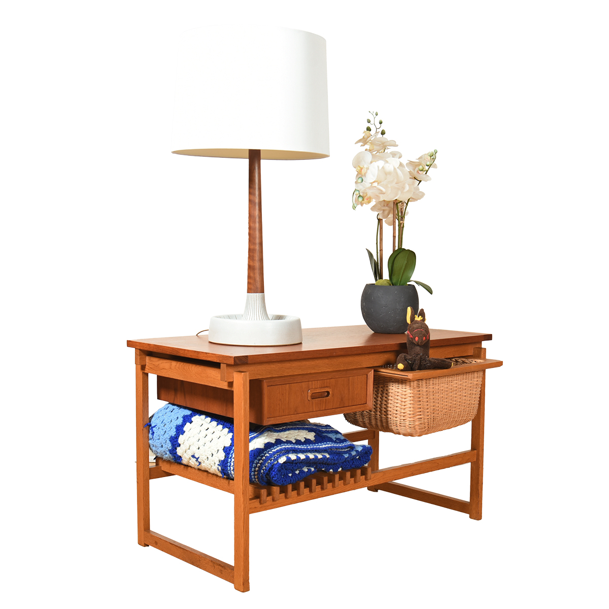 Scandinavian Teak Table w Mixed Storage – Perfect for Sewing + Craft Projects!