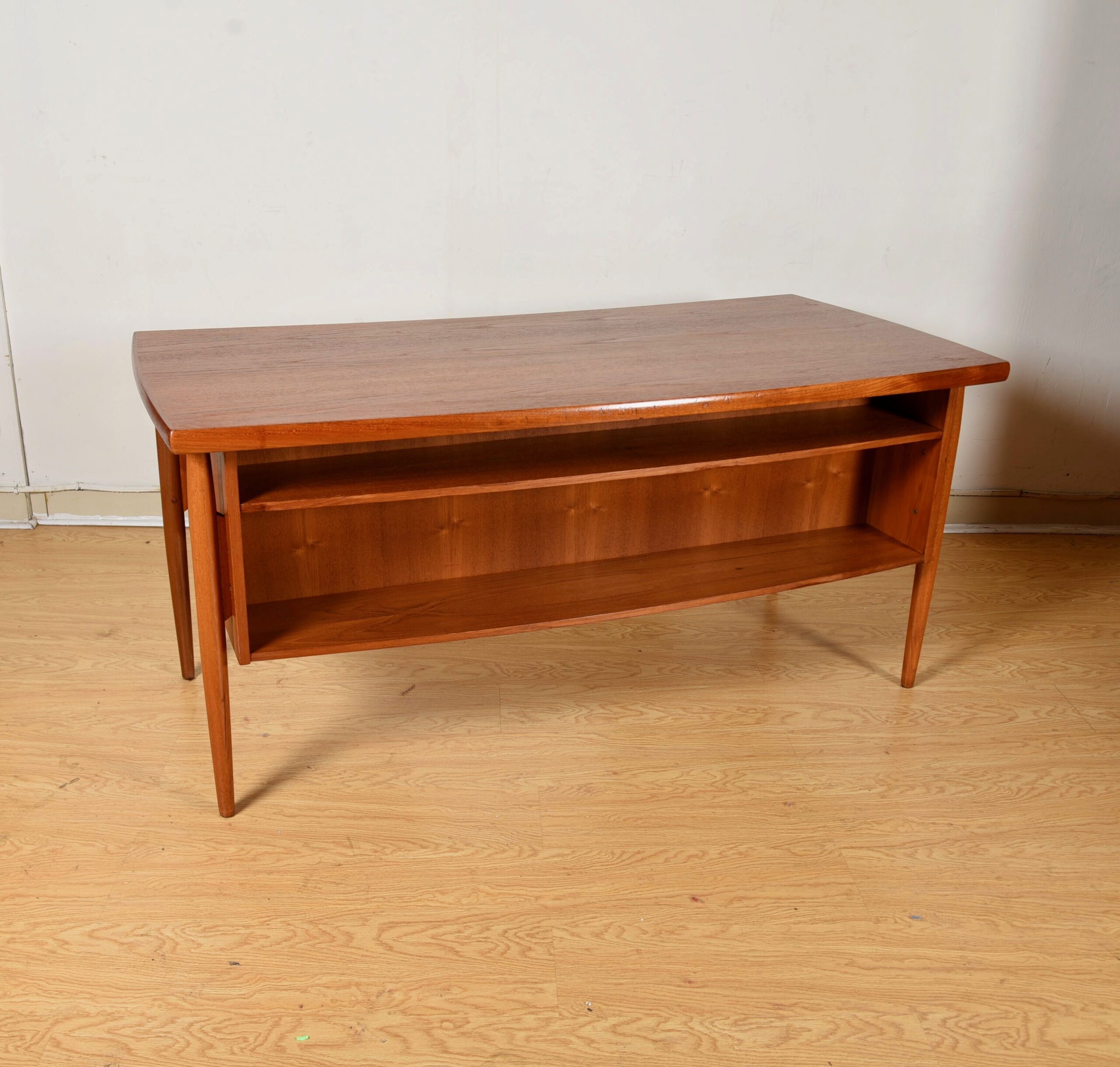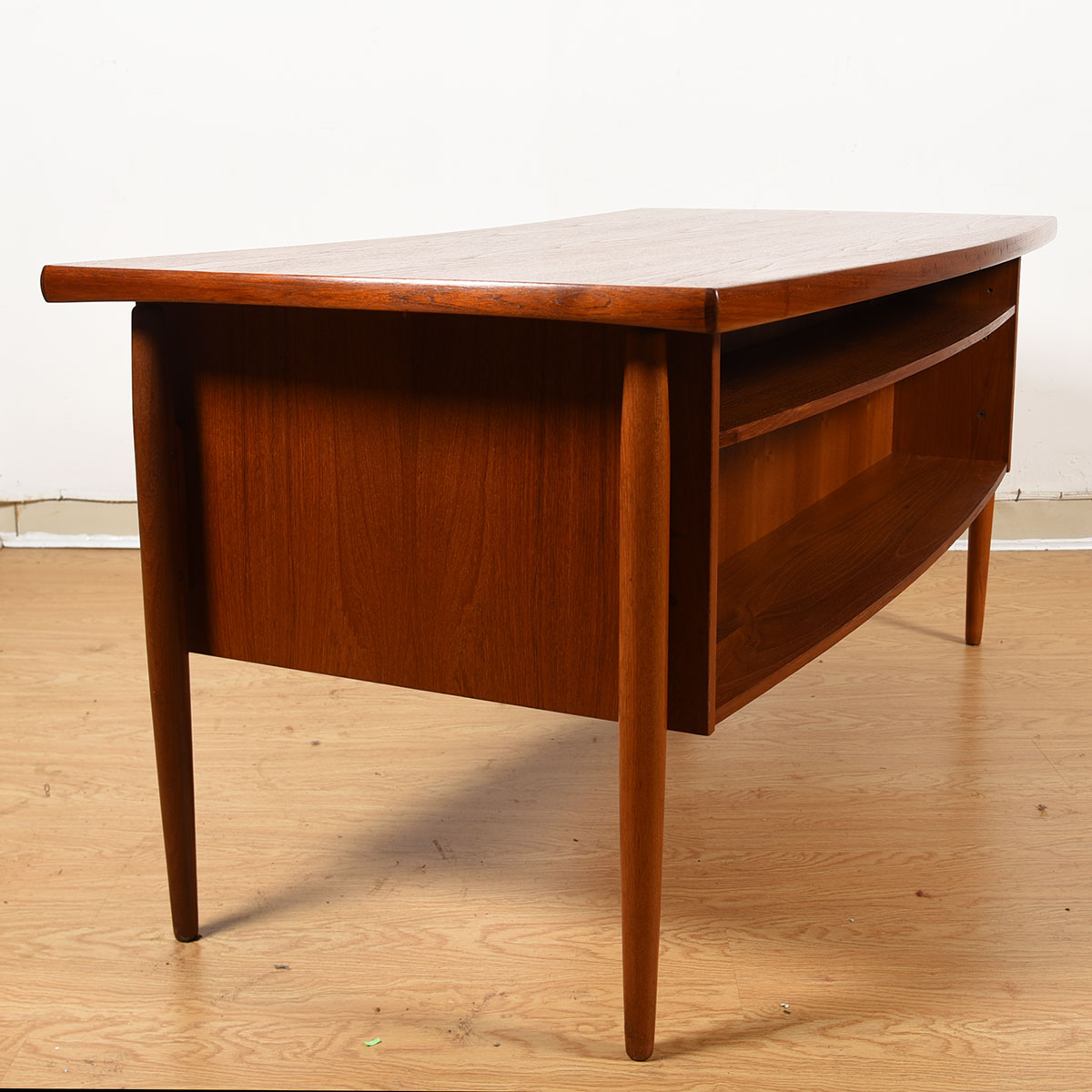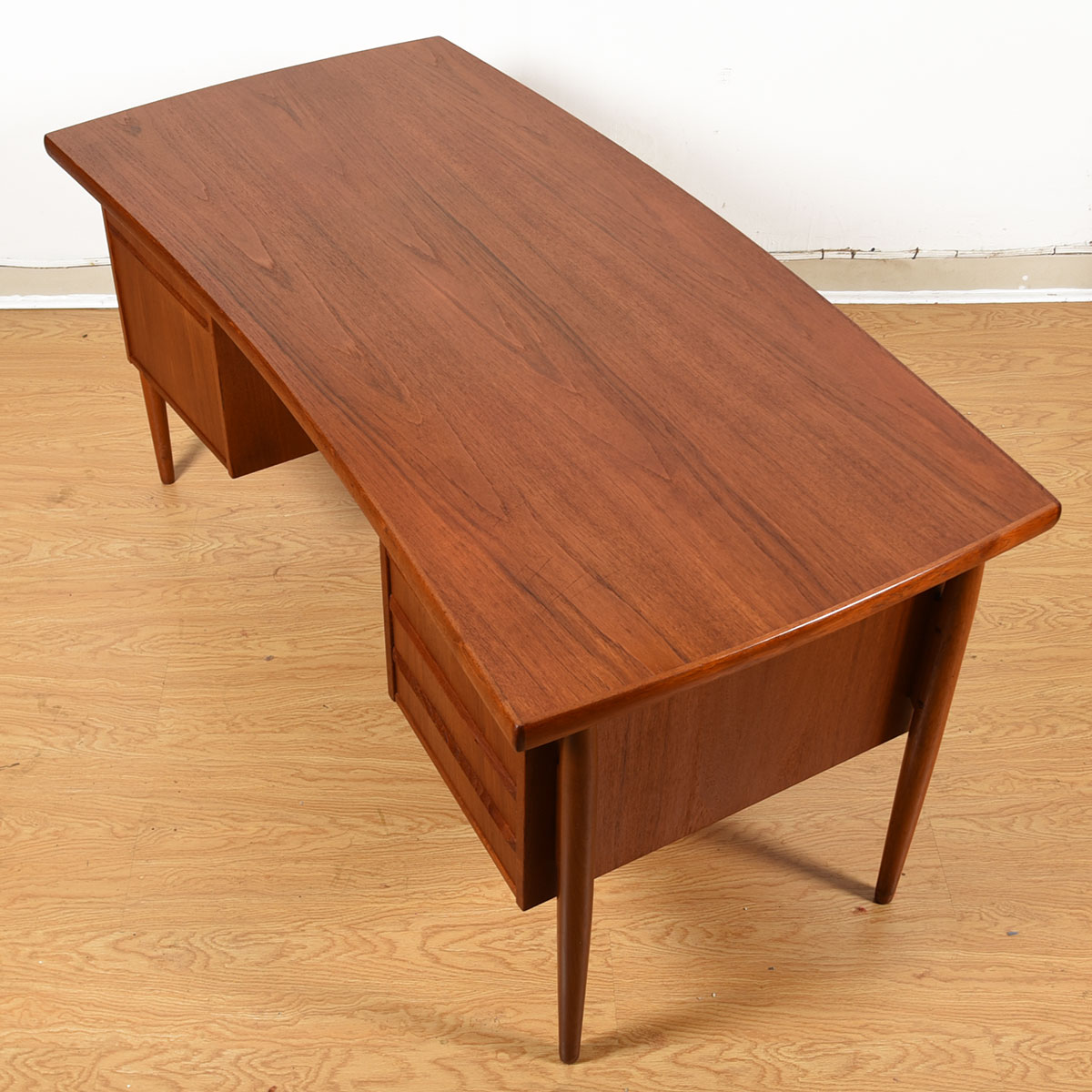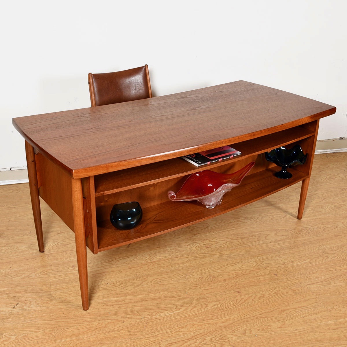 Sculpted Danish Modern Teak ‘Concave’ Bowed-Front Desk